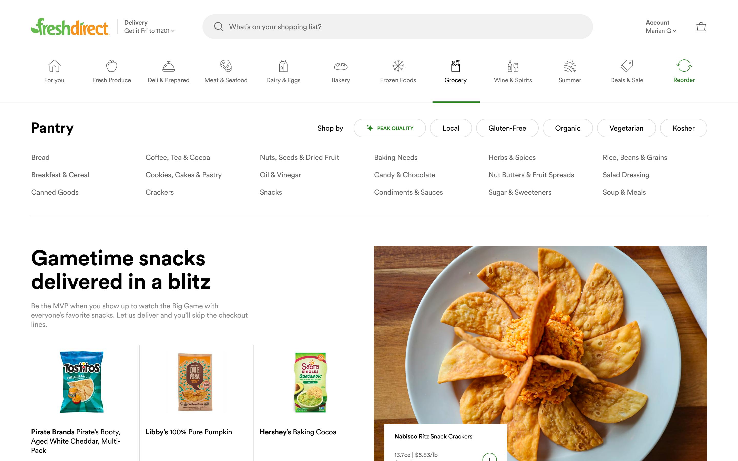 FreshDirect is an online grocery delivery service that provides customers with fresh food and grocery items delivered straight to their doorsteps. It was founded in 1999 and is based in New York City, serving customers in various parts of the United States, primarily in the Northeast.