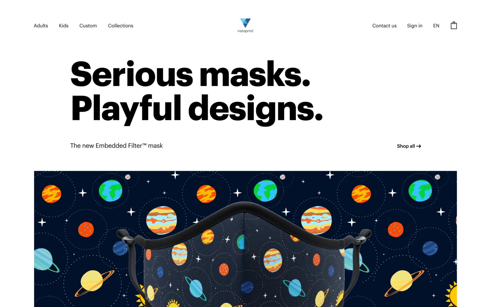 Within weeks, we brought a first-of-its-kind product for Vistaprint to market. We worked in an agile and responsive way to create e-commerce to get masks to customers as quickly as possible.